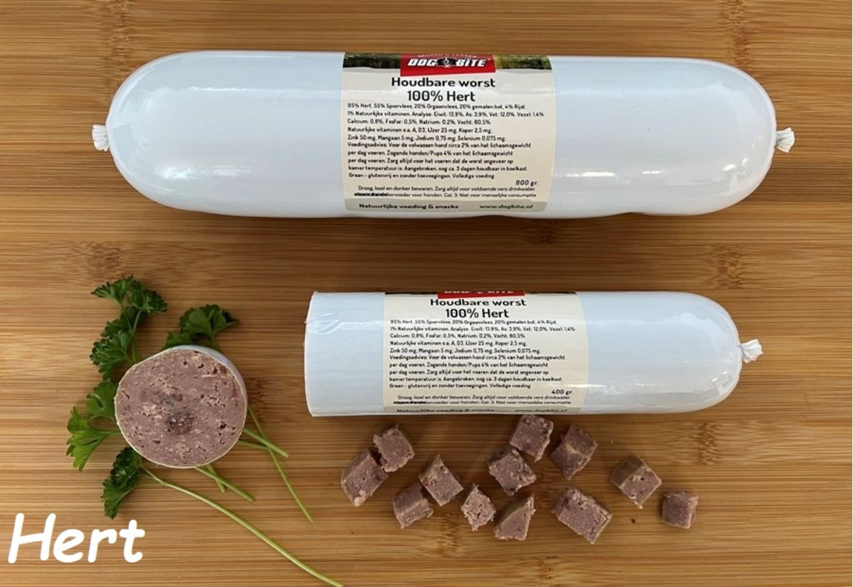 De worsten zijn een complete maaltijd en geschikt van puppy tot volwassen hond. De worst bevat alle (essentiële) dagelijkse voedingstoffen, bouwstoffen, vitaminen en mineralen die een hond nodig heeft en ze zijn licht verteerbaar.