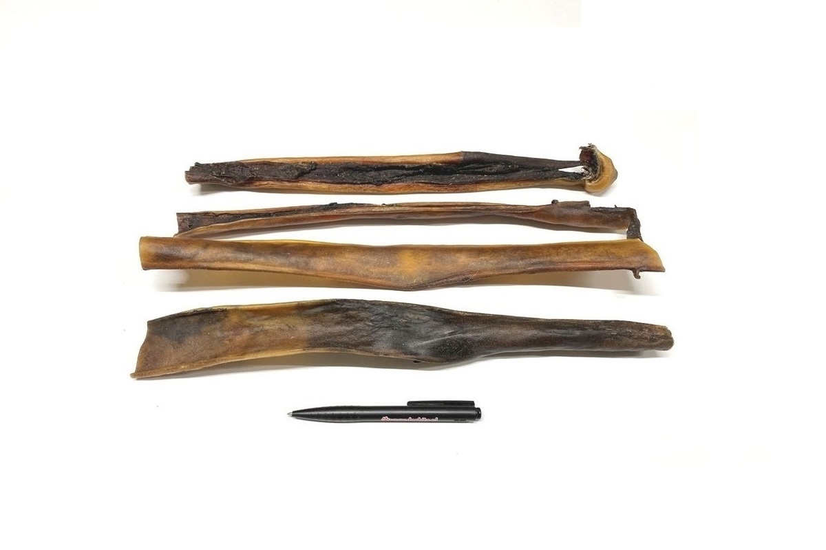 Mooie stukken kophuid, de lengte is perfect voor grote honden die een hoge kauwbehoefte hebben. De hardheid zorgt ervoor dat ze er een mooie klus aan hebben! Ideaal voor mijn hond die allergisch is voor rund en dus geen kophuid daarvan kan hebben. Hierdoor heeft ze toch veel kauw plezier!