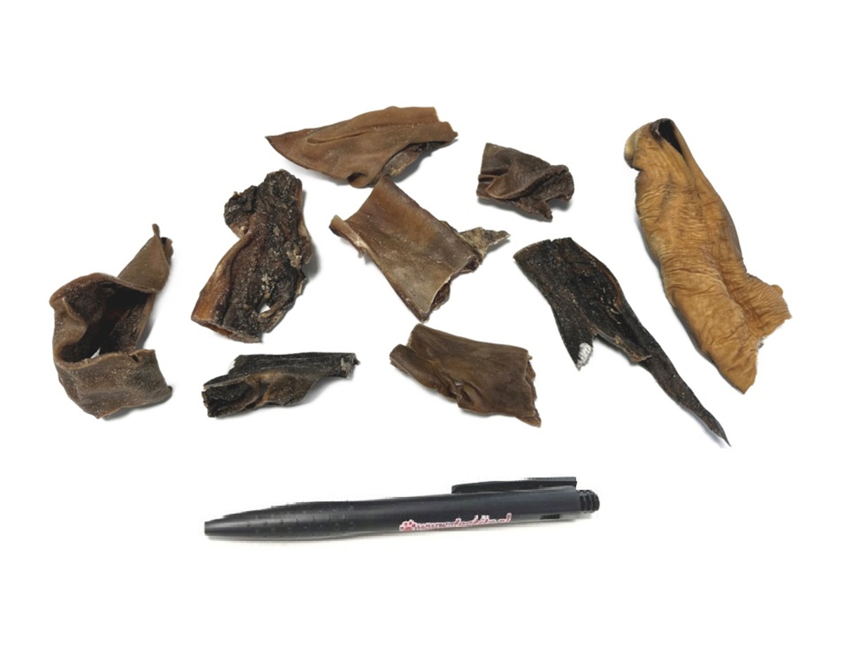 Stevige kauwsnack maar niet geliefd bij onze volwassen honden. Onze pups zijn er wel dol op, voor hun betekenen deze stukjes enkele uren kauwplezier.