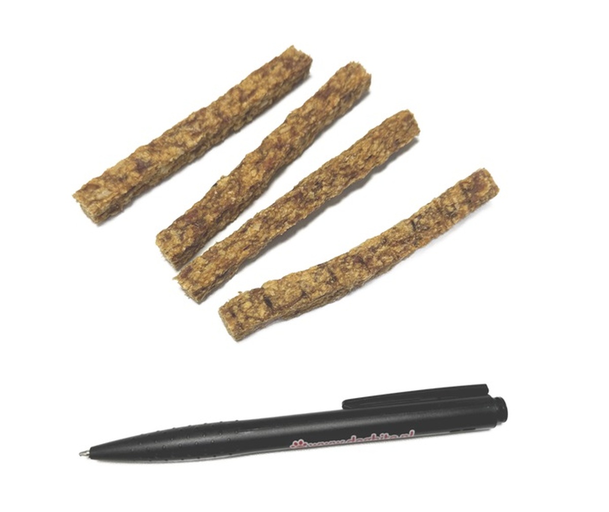 Deze Kauwstaaf is circa 12 cm. lang en dik ca. 1×1 cm. Bestaat uit 100% konijn. Goed voor honden die op eliminatie dieet zijn.