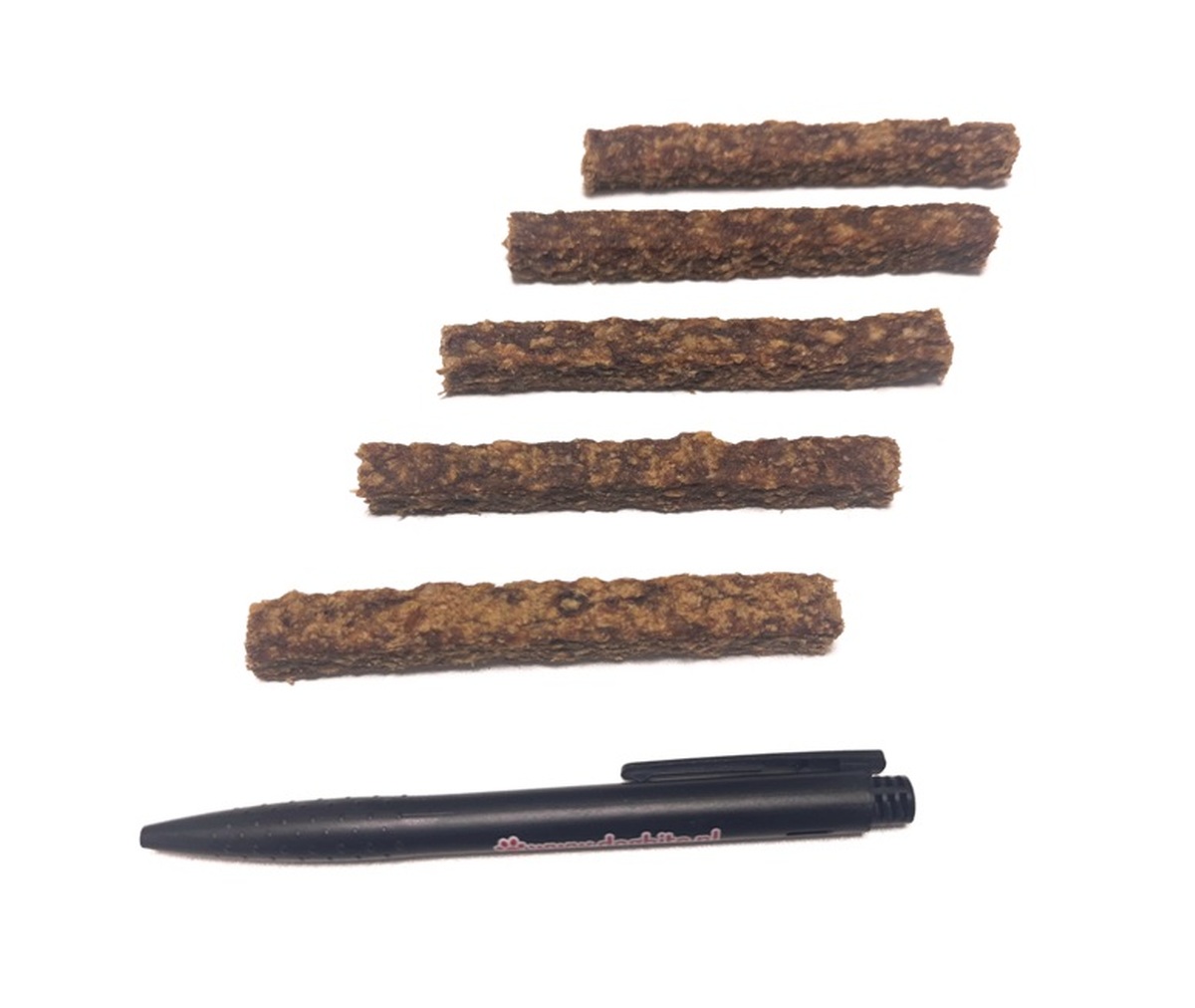 Deze Kauwstaaf is circa 12 cm. lang en dik ca. 1×1 cm. Bestaat uit 100% Lam.