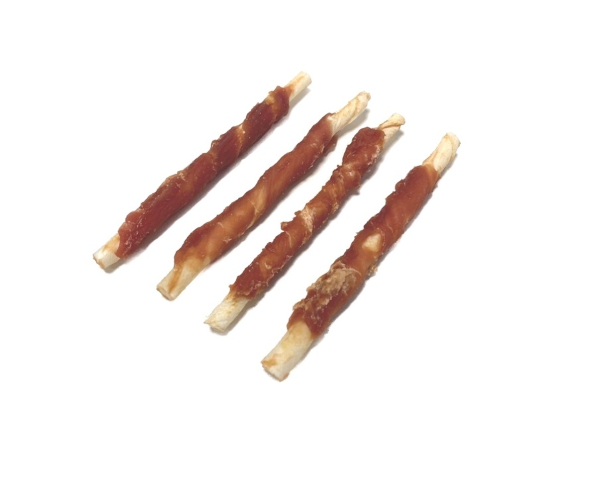 Deze Kauwstaaf met Eendfilet omwikkeld is een traktatie voor uw hond. Deze Kauwstaaf is omwikkeld met gedroogd Eendfilet en is ca. 13 cm lang. Geschikt voor middel en kleine hond. De Buffelhuid is vetarm.