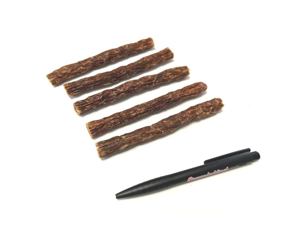 De gedroogde Vleesstaaf is gemaakt van 100% Vlees! Deze zijn onweerstaanbaar voor uw hond en tevens gezond. Een heerlijke traktatie of tussendoortje! Makkelijk mee te nemen en de staven zijn niet vettig, je kunt ze ook makkelijk breken. Erg goed te gebruiken als training of in zoek spelletjes.