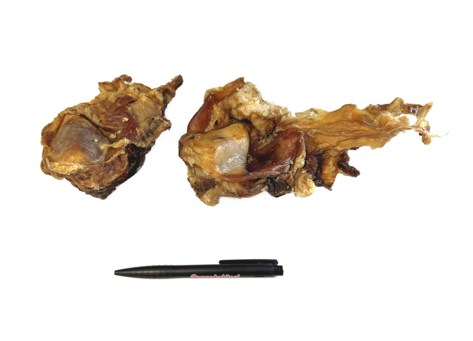 Deze knieschijf zit extra veel vlees aan en is daarom ook een stuk groter dan de gewone knieschijf.