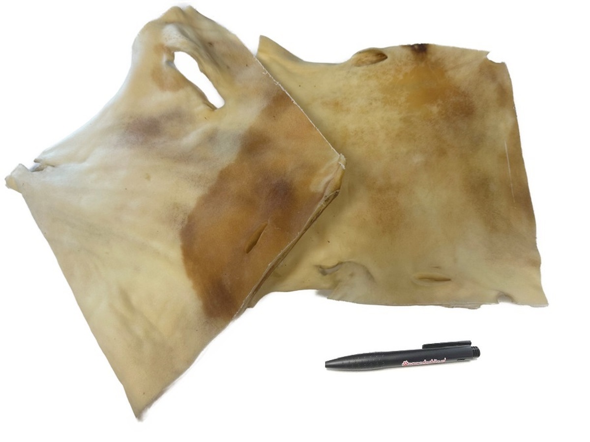 Deze prachtige en grote kophuidplaten zijn zeer geschikt voor de kauwgrage hond. Deze grootte van de kauwplaten kan de hond de plaat niet direct doorslikken. Ze moeten echt wat voor deze kauwplaat doen! Herkomst: Rund/EU
