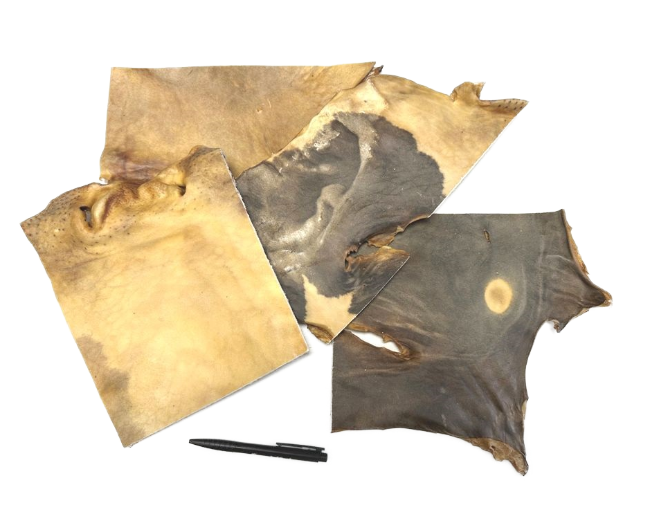 Afmeting van de platen zijn ongeveer 25×20 cm. t/m 30×30 cm. Eén kophuidplaat weegt circa tussen de 200 – 500 gram p/st. Dit is een indicatie.