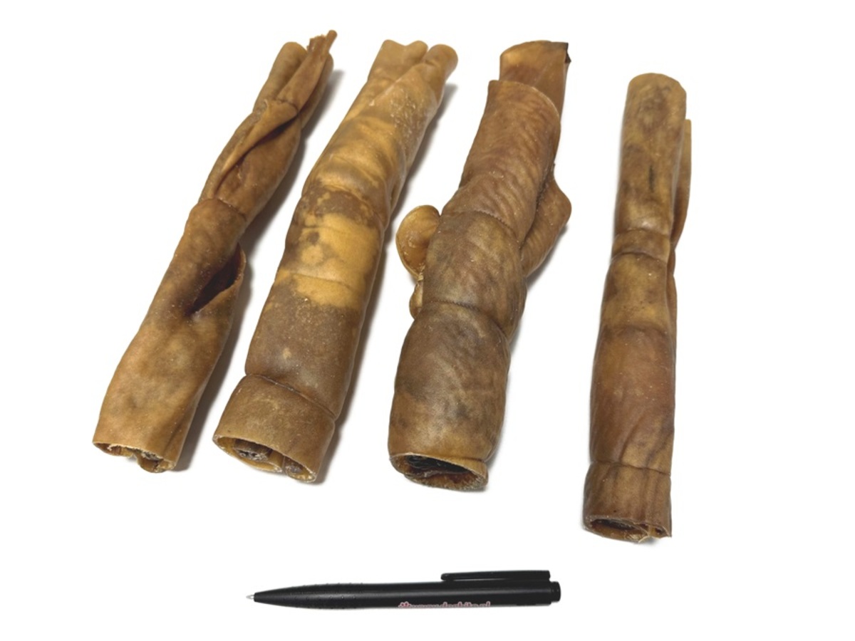 Op natuurlijke wijze gedroogde dikke stukken Runder Kophuid Rollen van 25/30 cm. Mooie grote dikke harde stukken.