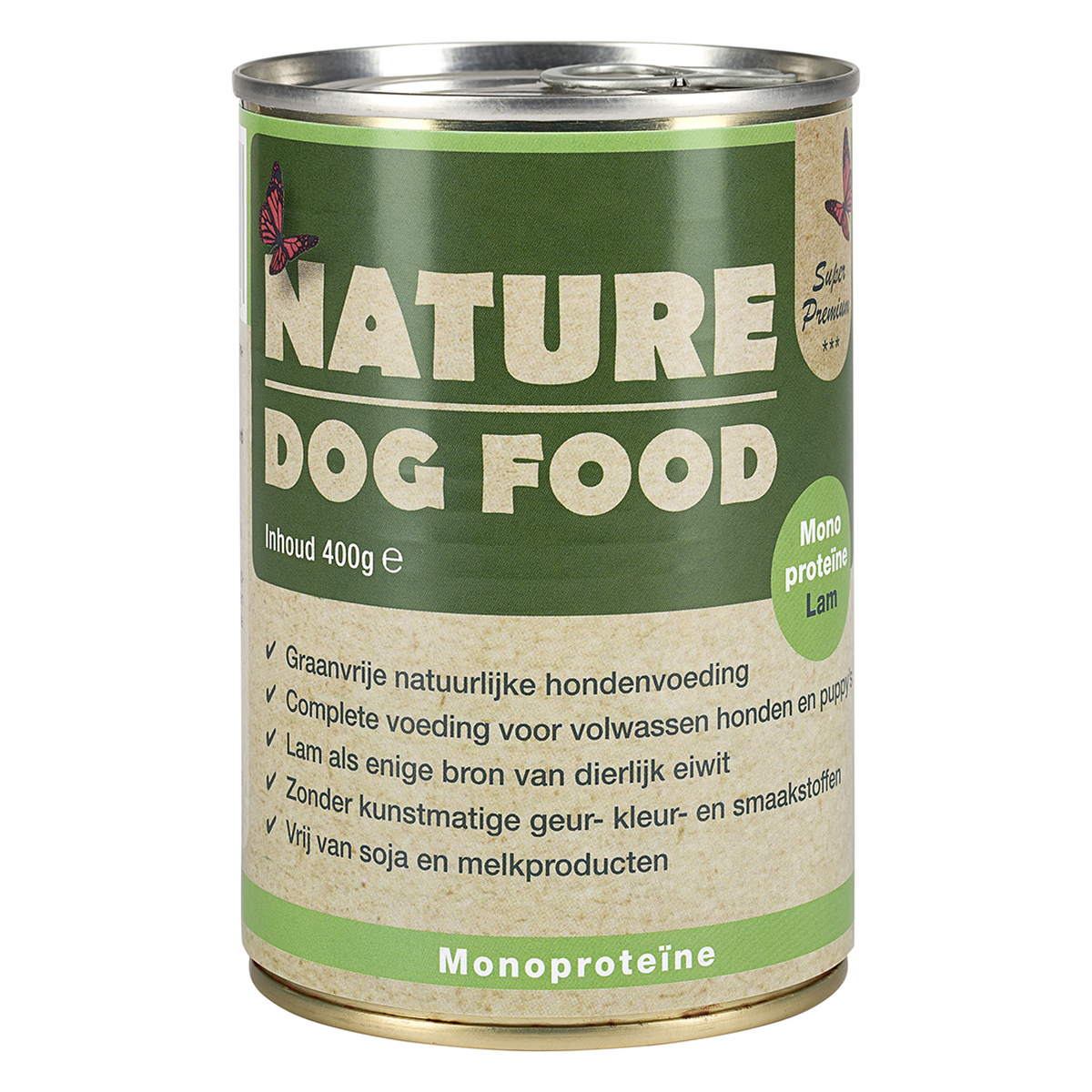1 blik Nature Dog Food Natvoer bevat circa 400 gram.