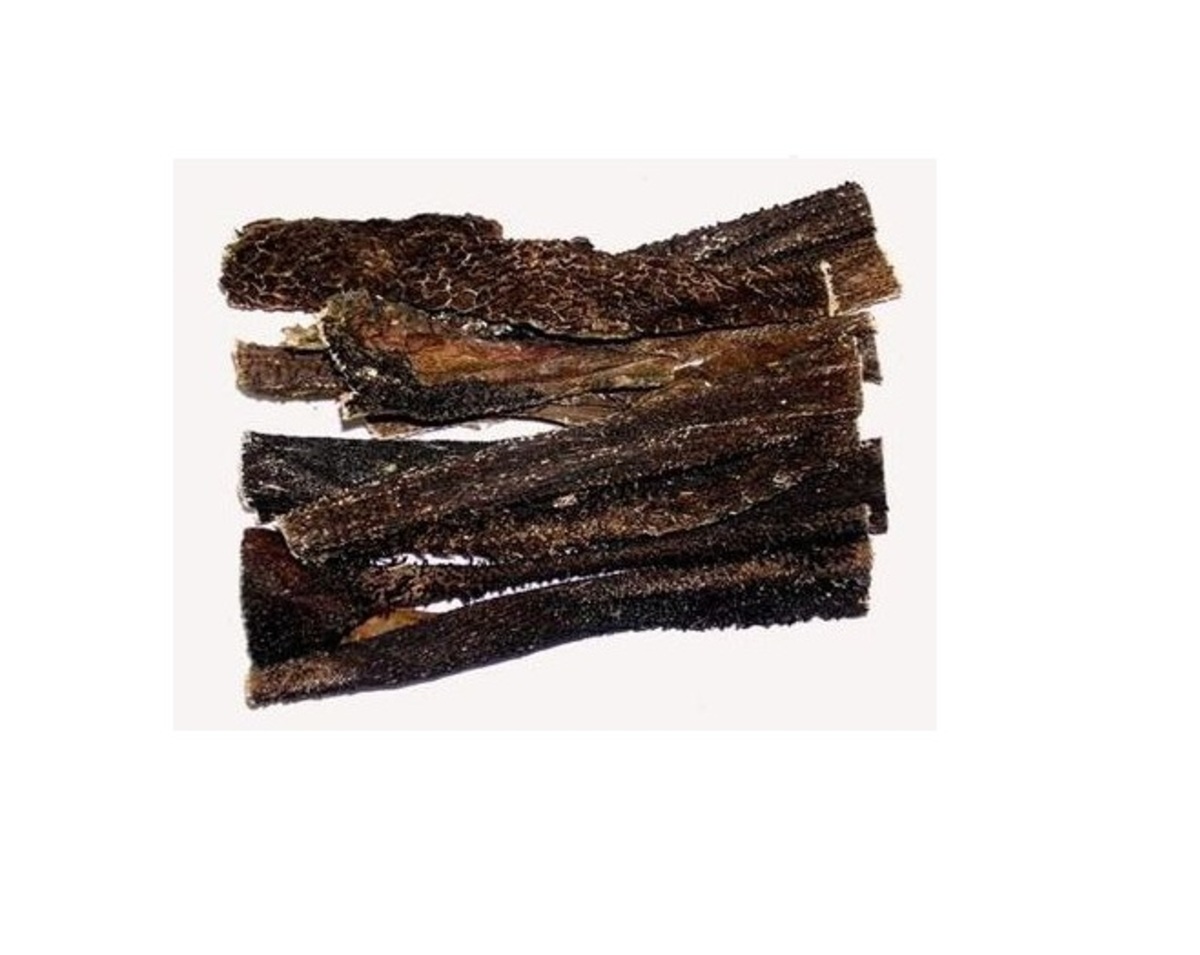 Natuurlijke gedroogde Runderpens. Runderpens is een ideale snack voor tussendoor. Door het droogproces wordt met zorg water aan de verse pens onttrokken. Het is lekker en gezond. Geschikt als kleine beloning of als snack. Herkomst: Rund / India