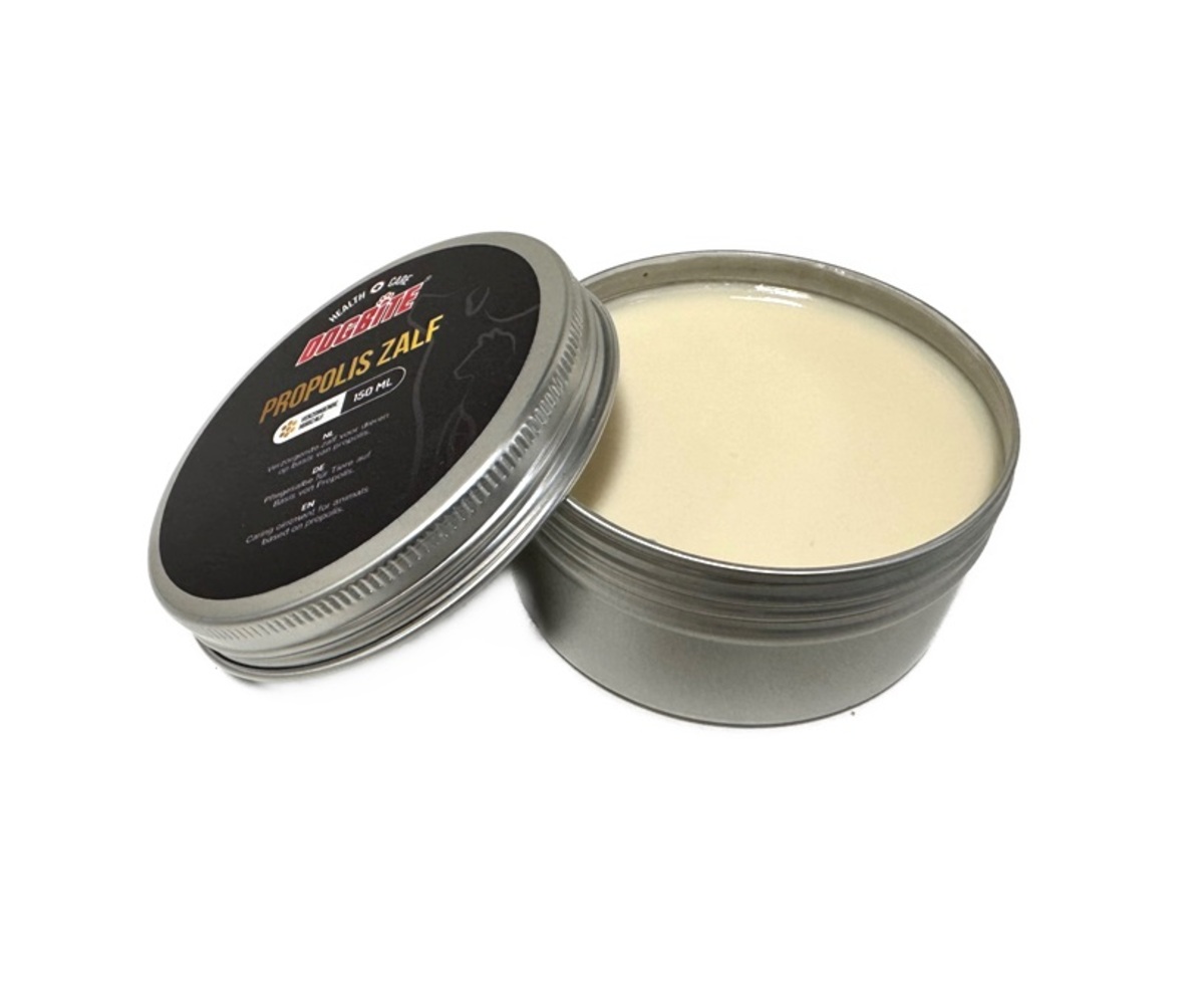 Zalf op basis van propolis. Propolis (bijenlijm) is een natuurlijk product dat door bijen geproduceerd wordt als een afdichtingsmateriaal om kieren en openingen te dichten en de structuur van het bijennest te verstevigen. Het is een complex product, waarin meer dan 300 verschillende biologisch actieve stoffen zijn gevonden. Al deze stoffen werken samen en hebben desinfecterende eigenschappen, houden ziekteverwekkers buiten en zorgen op die manier voor goede hygiënische omstandigheden in het bijennest.