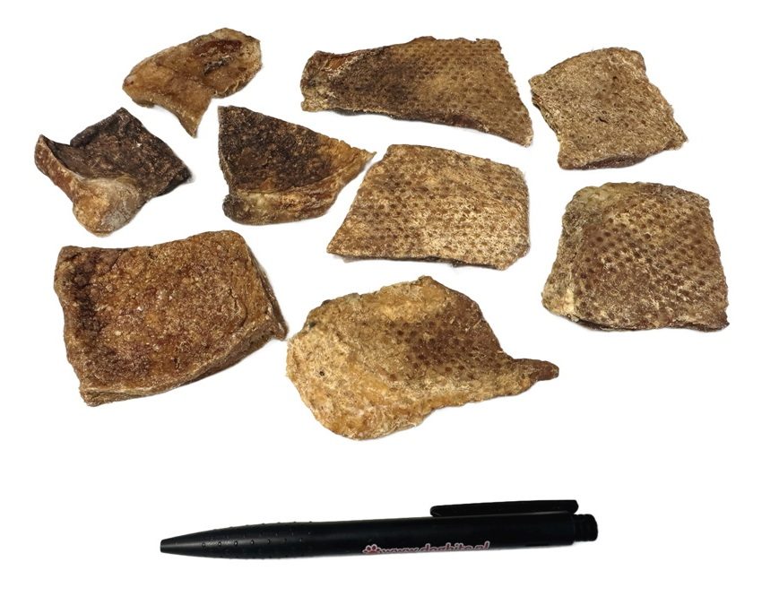 Vrij harde snack, ik breek ze in stukken voor m’n dwergteckel. Het stinkt ontzettend en hij vindt het heerlijk haha!