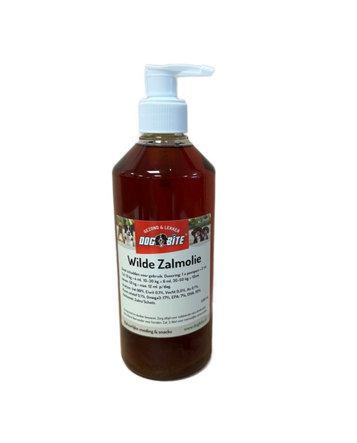 Wilde Zalmolie uit Schotland. Wilde zalmolie geeft de hond weer een glanzende vacht. Geschikt bij diverse huidproblemen. Bevat natuurlijke omega 6 vetzuren.